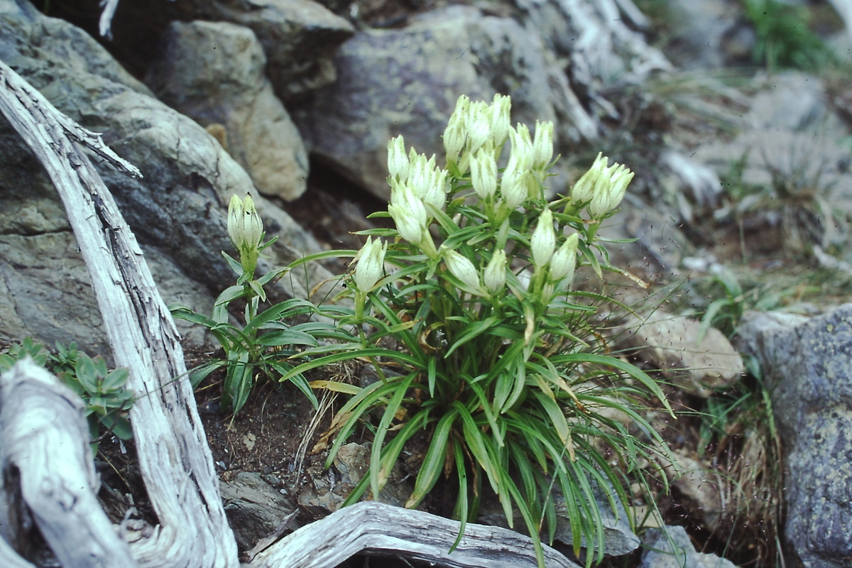 1.種の解説多年草。高さ8~15 cm。無性期は根出葉で、花期の茎葉は無柄で広線形から披針形で中脈がへこみ長さ2~5 cm。花期は8~9月。花冠は筒状で長さ3.5~4 cm、淡黄色で緑色の斑点がある。花は茎頂に単生し、日を受けて上向きに開き、花冠裂片は平開することなく斜開し、副片は低い。近縁種のオヤマリンドウは茎頂の葉腋に青紫色の花を数個つける。